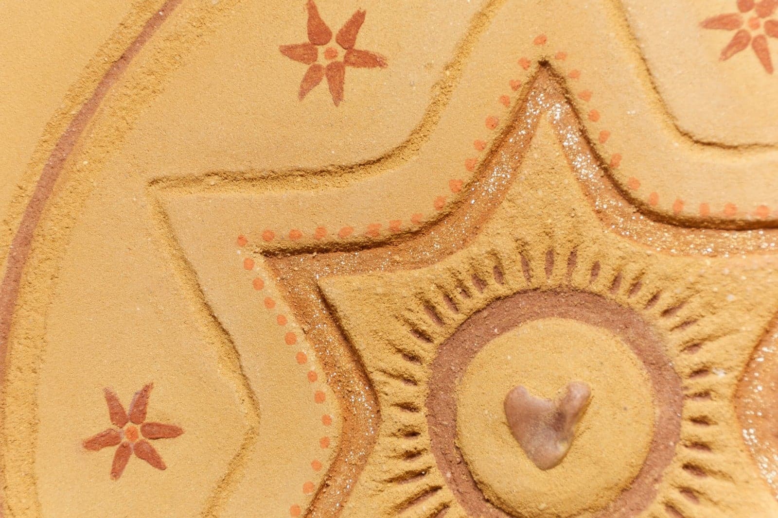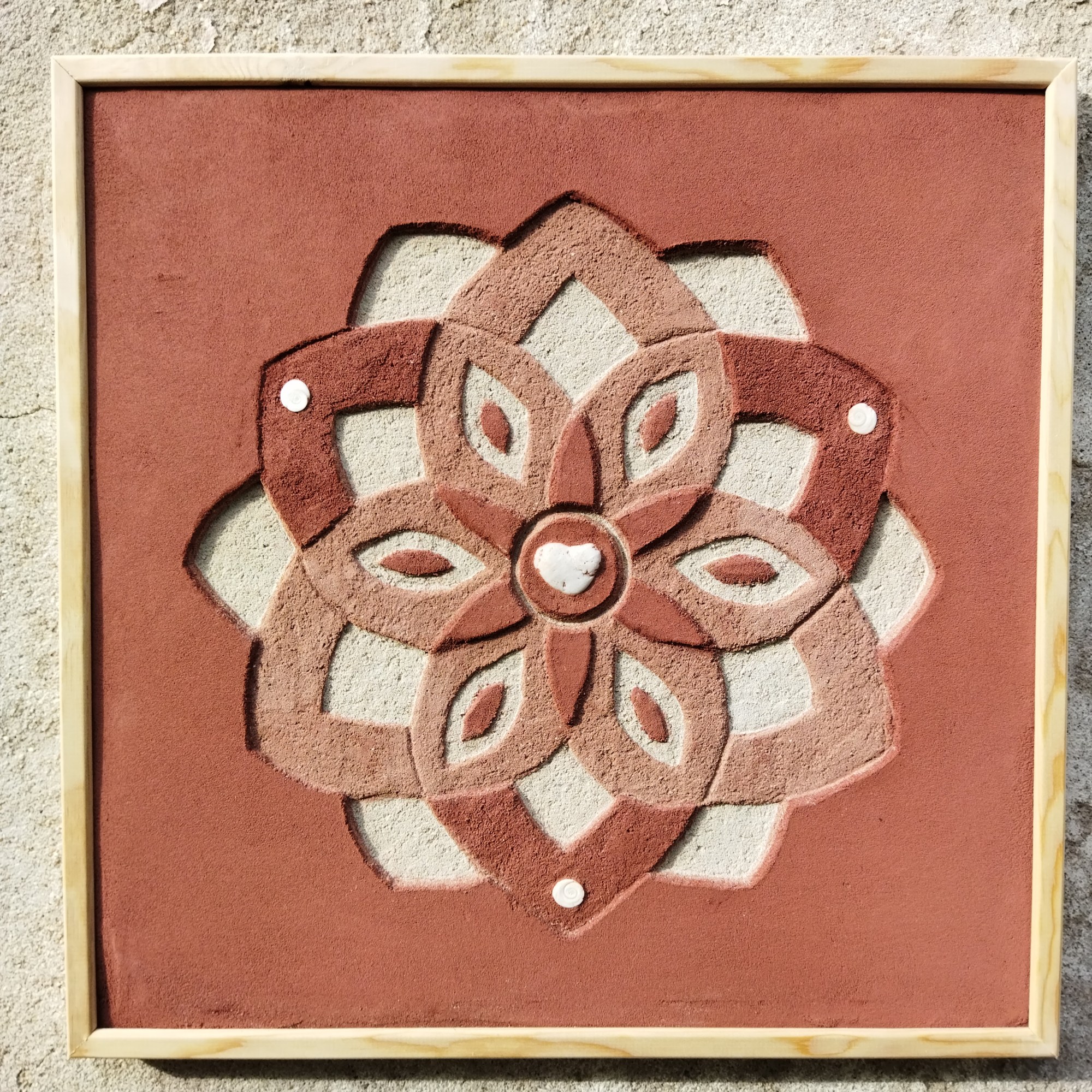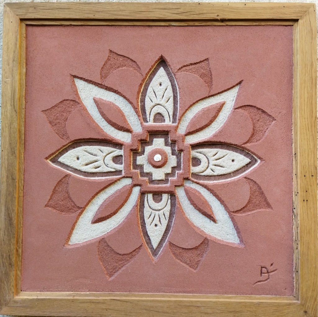 Grâce à la rencontre d’une artiste d’Arizona, j’ai découvert que l’on pouvait créer des Mandalas avec la technique Sgrafitto en terre. Déjà amoureuse des enduits terre, cette découverte m’a profondément enthousiasmée et elle est restée gravée dans mon cœur.