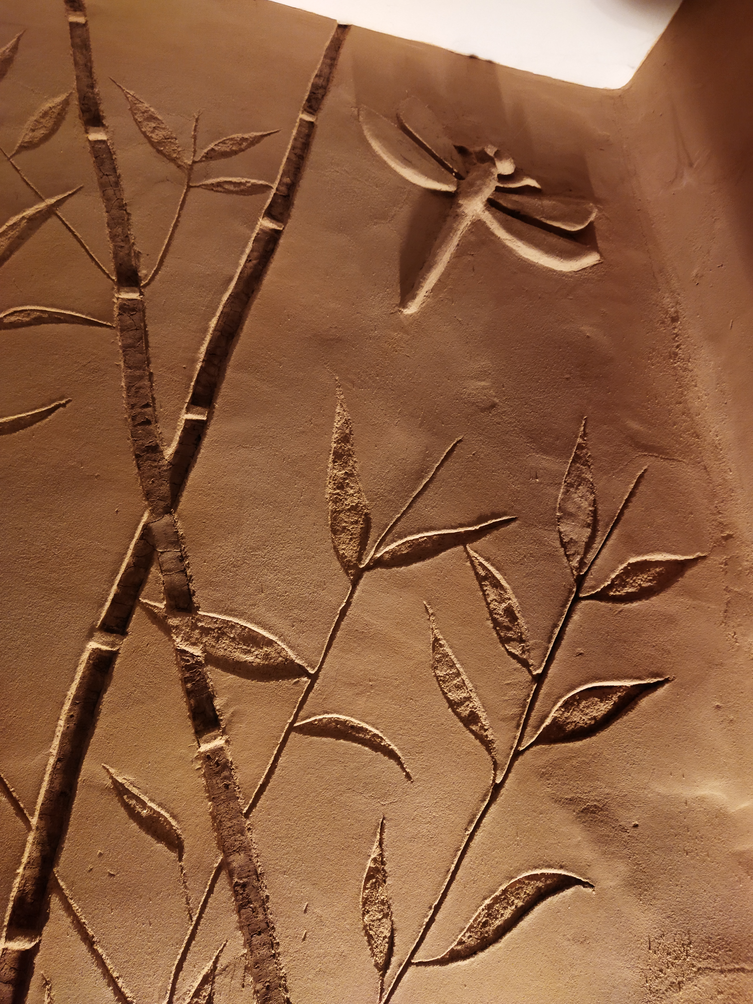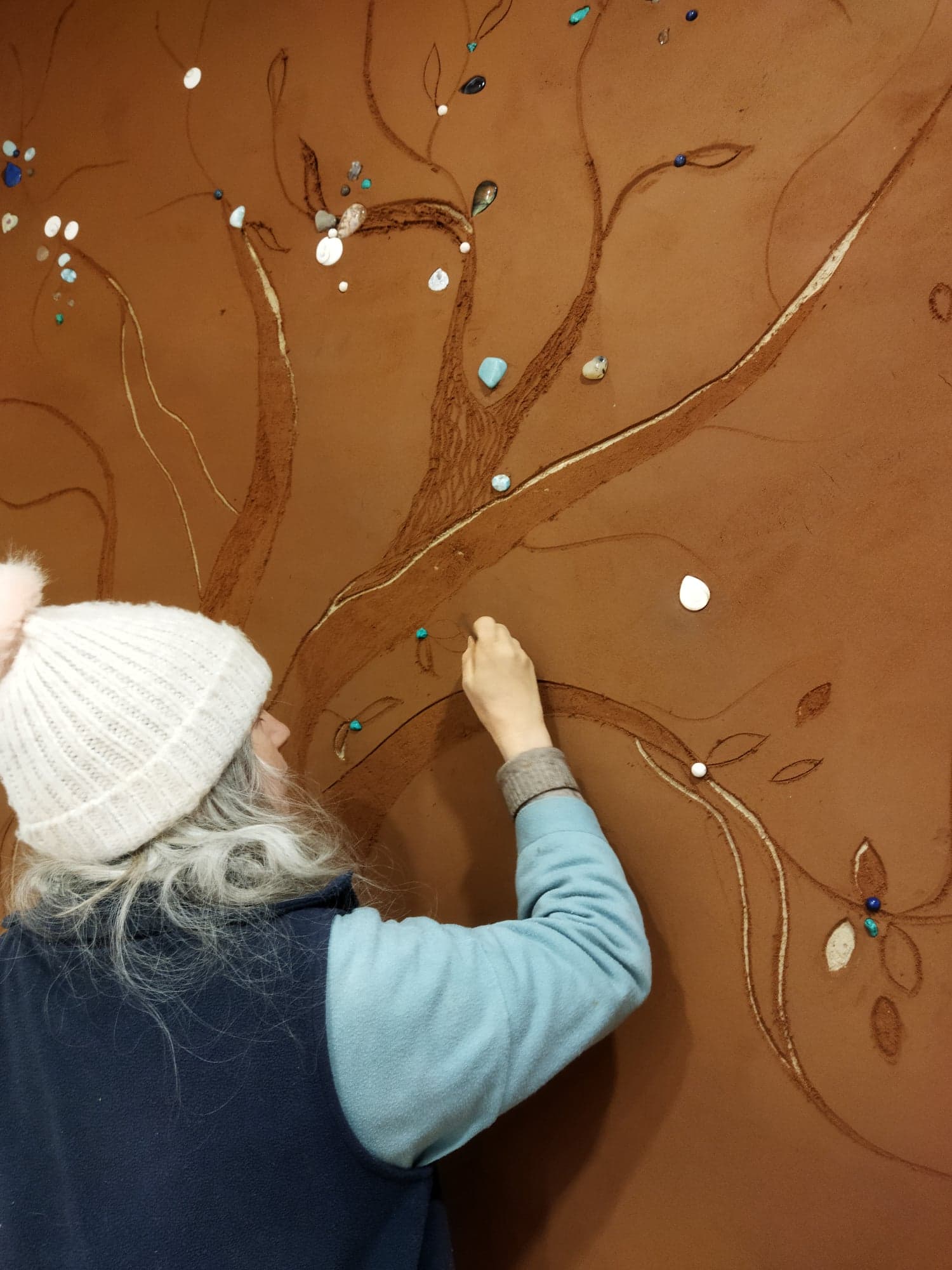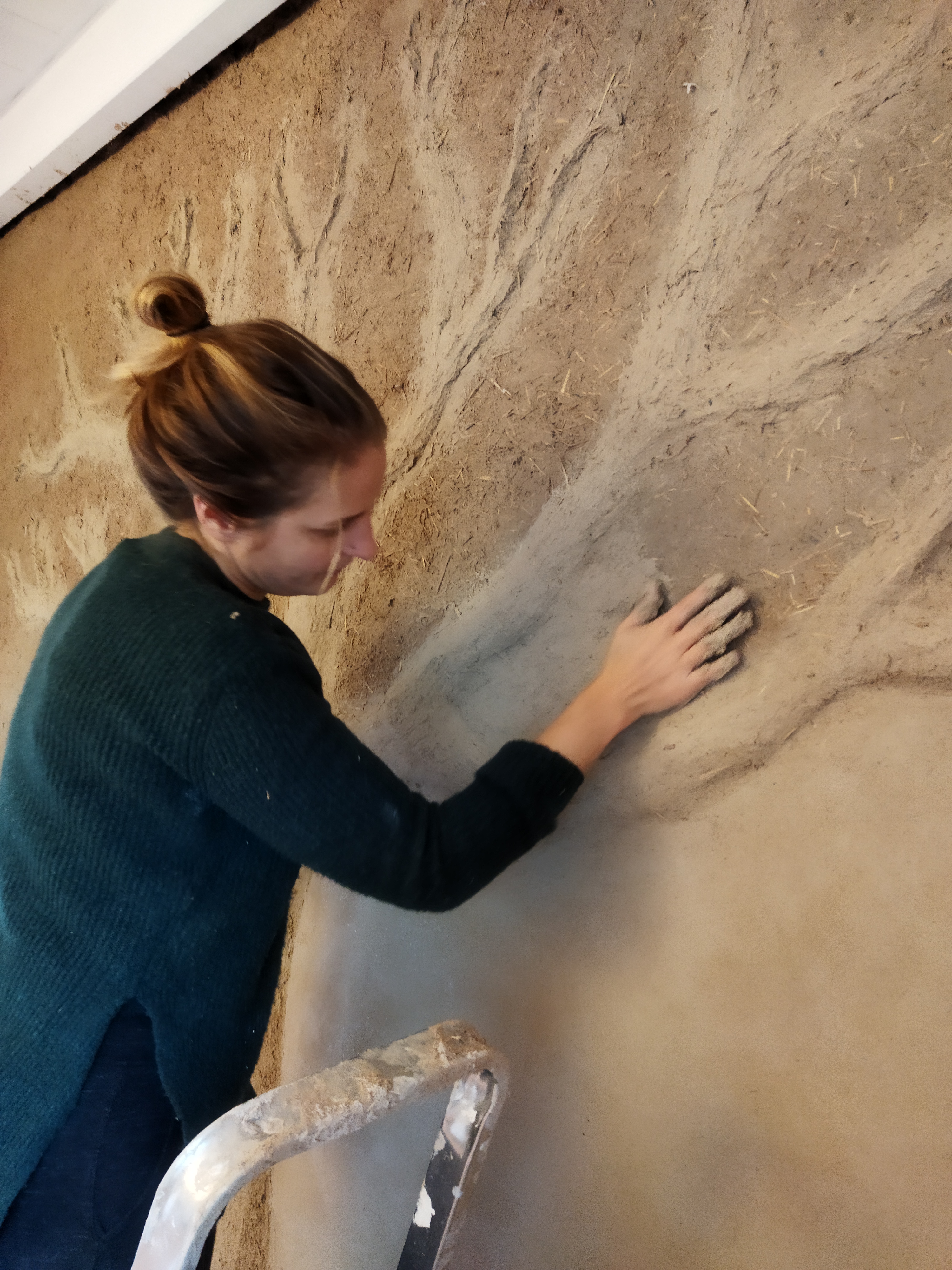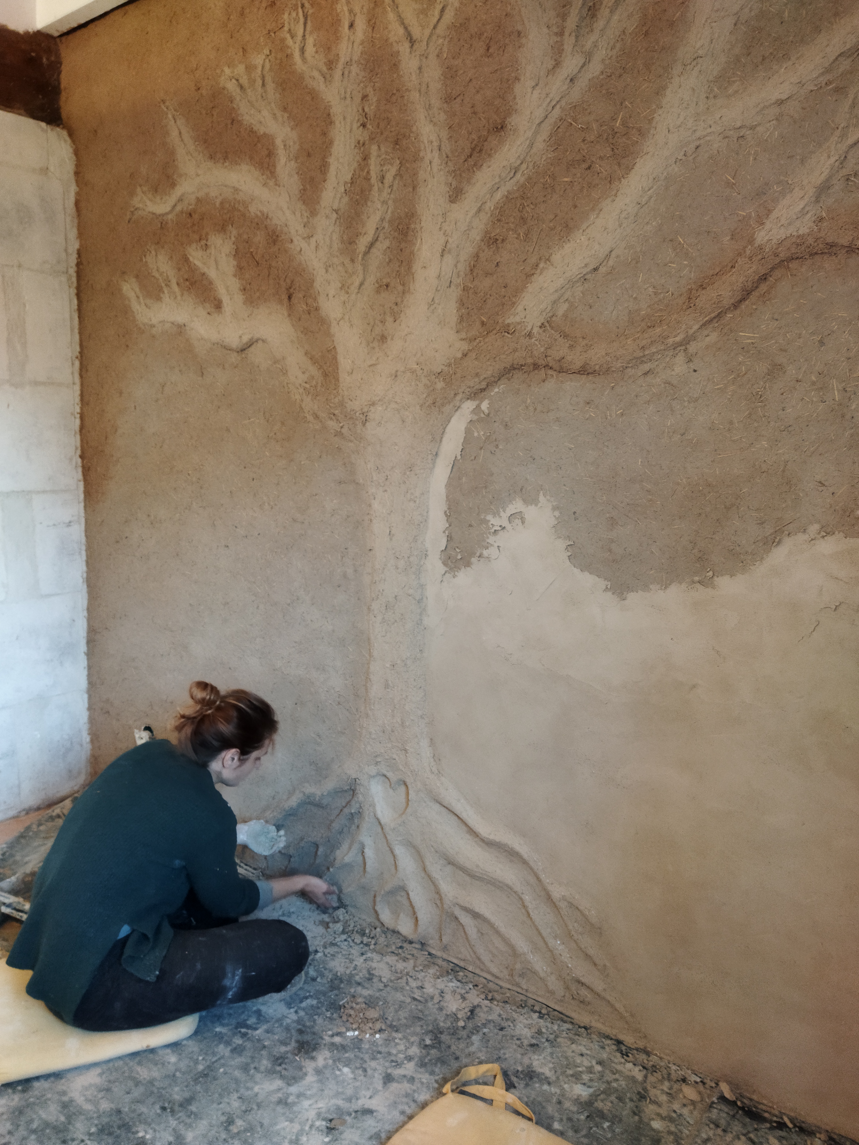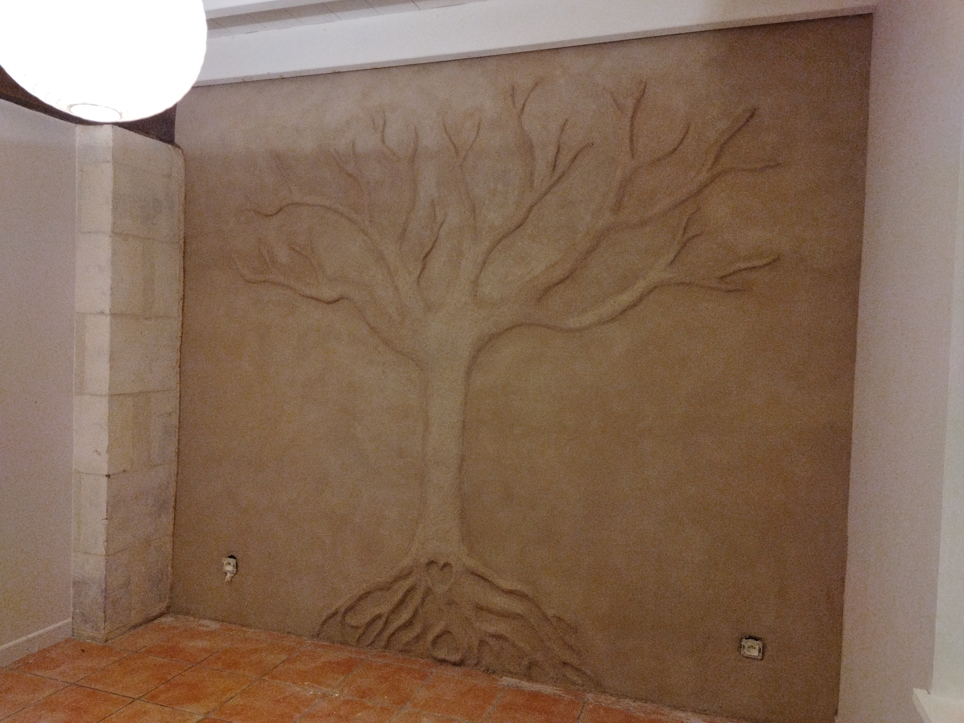 Nous avons réalisé le fond avec Coralie. Puis, nous avons commencé à sculpter et dessiner le tronc.