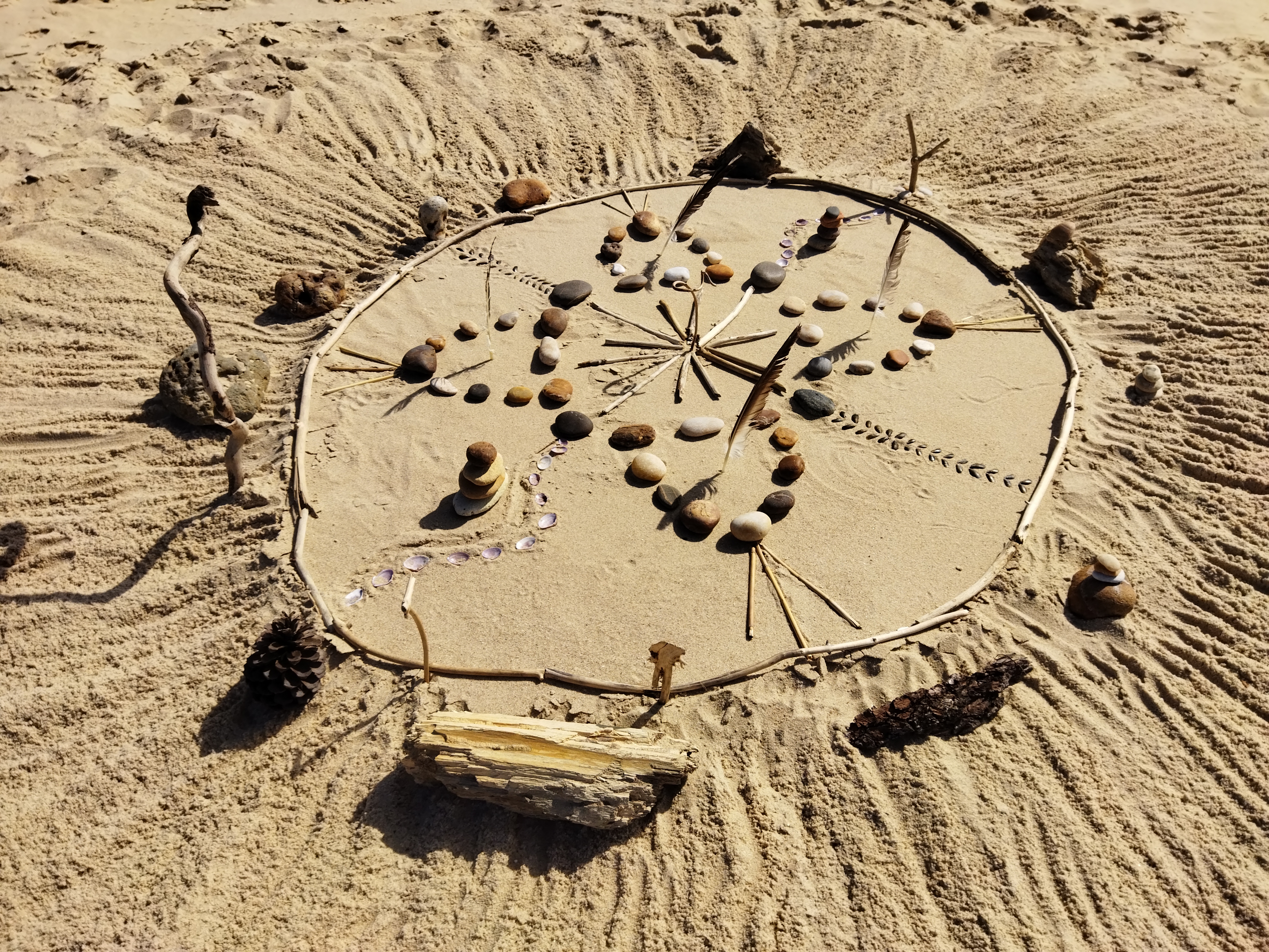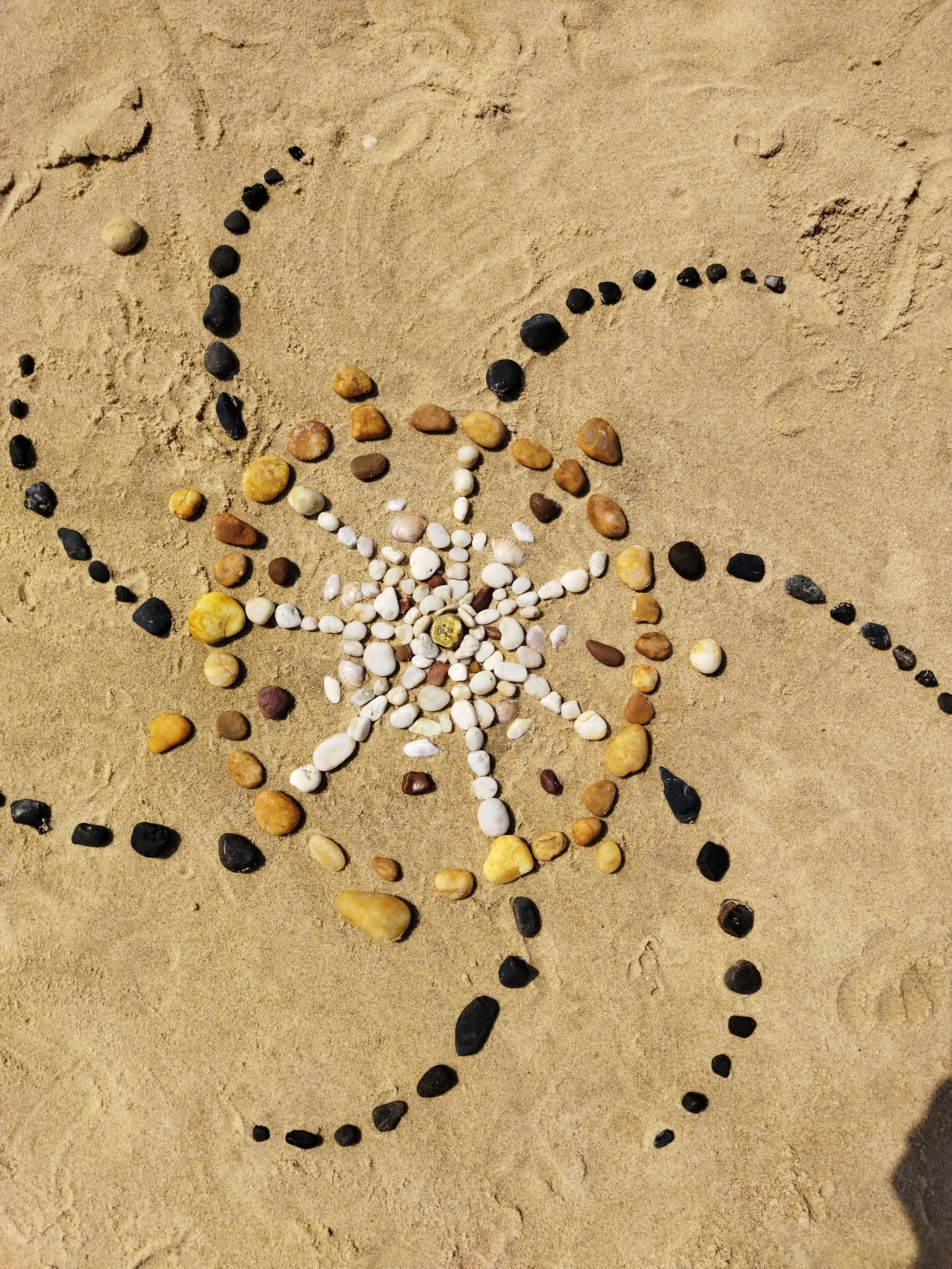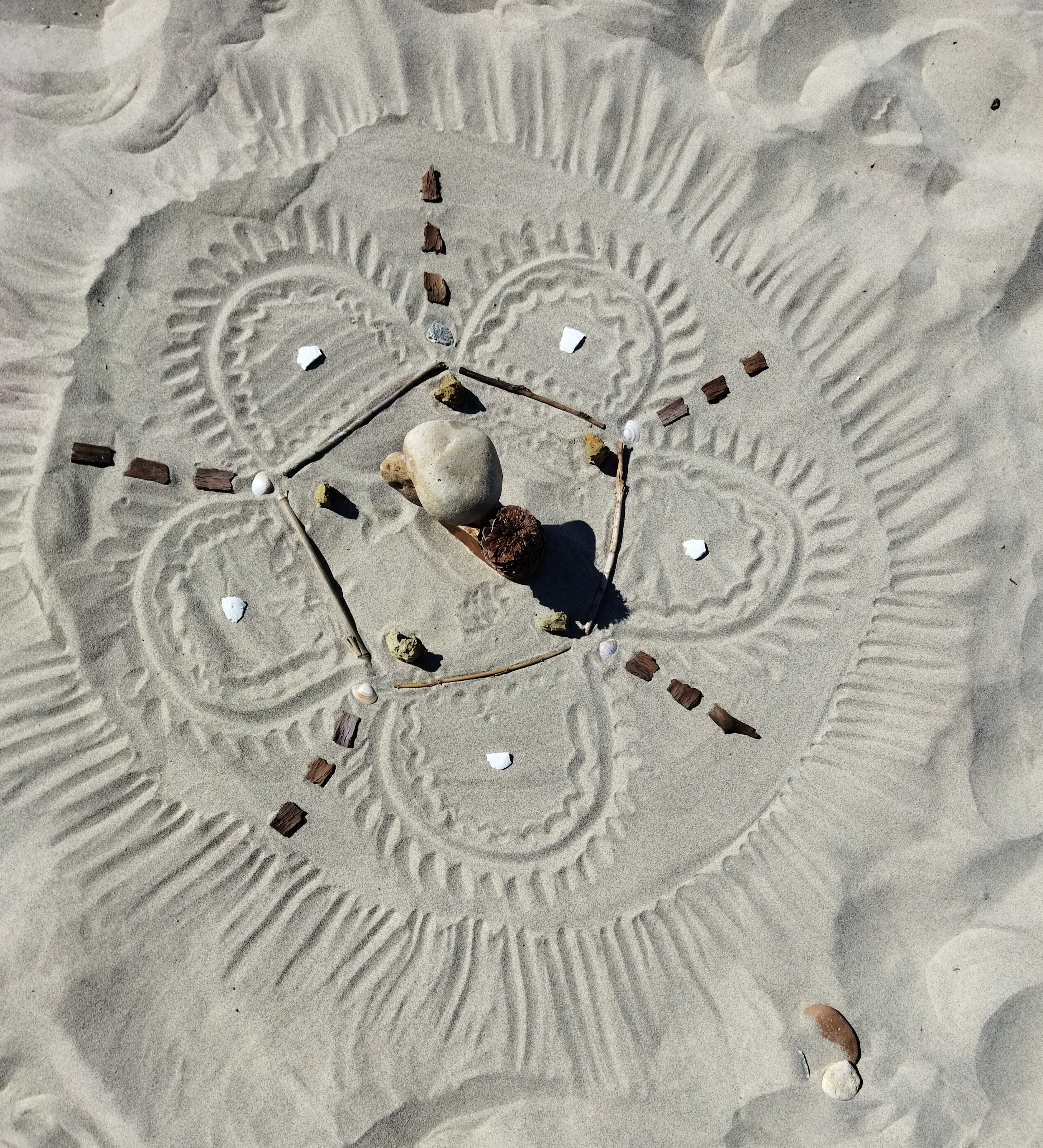… J’ai grand plaisir à créer à partir de matériaux bruts offerts par la nature. J’aime m’immerger dans la réalisation de mandala. Leurs formes savent à merveille réveiller la joie en moi. J’expérimente avec pour unique but le plaisir de créer dans l’instant.