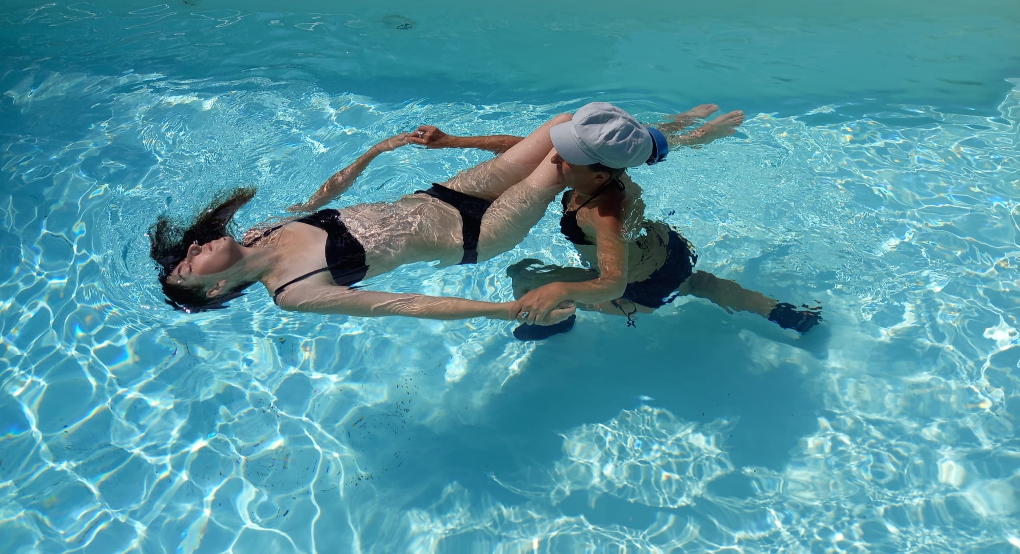 Toute séance finit par des mouvements à la surface de l’eau pour préparer en douceur le retour à la position verticale, à la gravité terrestre mais avec une tête, un cœur et un corps plus léger.